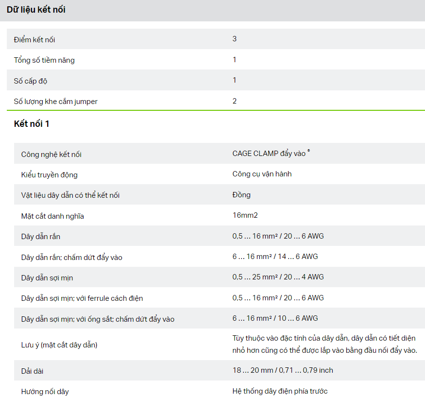Nhờ chân tiếp xúc tích hợp, sản phẩm cho phép truyền dẫn điện và cố định cơ học giữa dây dẫn và thanh gắn một cách an toàn tuyệt đối – lý tưởng cho các hệ thống điện công nghiệp hoặc tủ điều khiển hiện đại.