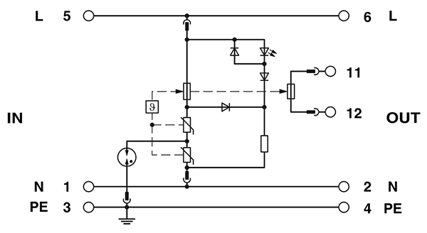 | Dòng phóng điện danh nghĩa In (8/20) µs (L-PE) | 1 kA |